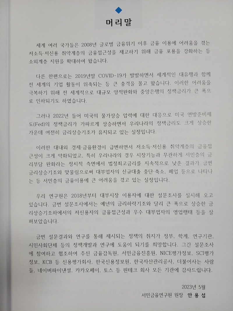 | 제목 | 저신용자(대부업,불법사금융이용자),우수대부업체대상 설문조사분석 | ||||