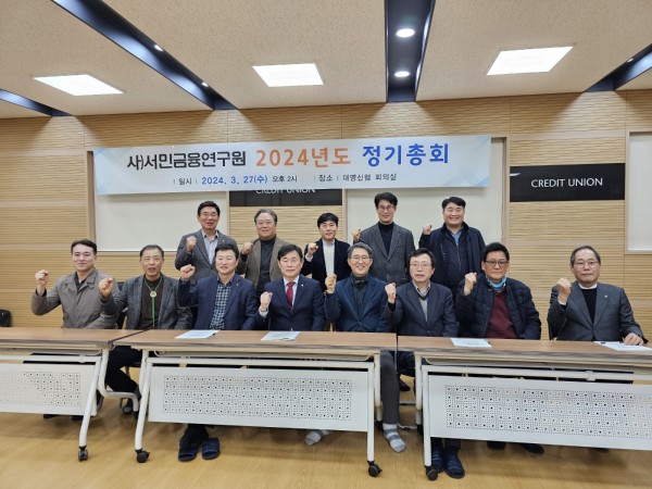 회원님의 관심과 참여에 힘입어 다음과 같이 정기총회가 개최되었습니다. 1. 일시 : 2024년 3월27일(수) 14:00~15:30 2. 장소 : 대명신협 2층 문화센터(동대문구 왕산로) 3. 안건 제1안건 : 2023년도 사업결산 승인 - 감사 보고 - 제2안건 : 2024년도 사업계획 및 예산(안) 승인 4. 내용 - 정관 제19조 1항에 의거 성원요건을 갖춤. - 상정된 제1호, 제2호 안건에 대하여 참석회원의 만장일치로 승인됨 서민금융연구원은 항시 회원님의 관심과 참여에 감사드립니다. 또한 매우 어려운 시기 이지만 회원님과 함께 서민금융 발전을 위해 지속적으로 노력하고자 하오니 변함없는 성원 부탁드립니다. |